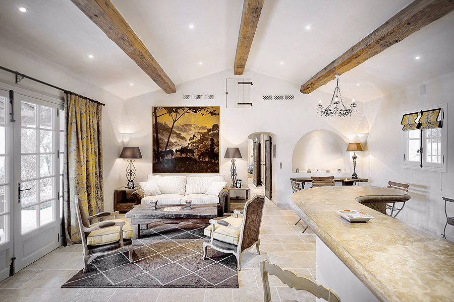 Oliviers. L'esprit du traditionnel provençal y est très présent avec ses murs tout en pierre et sa déco trés chaleureuse. Des espaces à vivre sur plusieurs niveaux et des pièces de réception ouvertes sur le parc, la piscine et la Baie de de Cannes en font un lieux villégiature idéal.